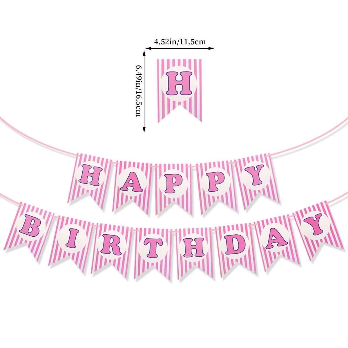 Celebrate Kids Birthday Banner in style with this "Happy Birthday" banner featuring pink and blue striped designs. Perfect for any birthday party decoration